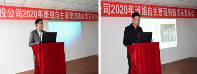 發布會上,發布人員向與會人員從成果的項目背景、創新原因和目的、項目目標、實施方案、創新特點、效益分析及推廣情況幾個方面運用PPT的形式,詳細介紹了班組自主創新成果。